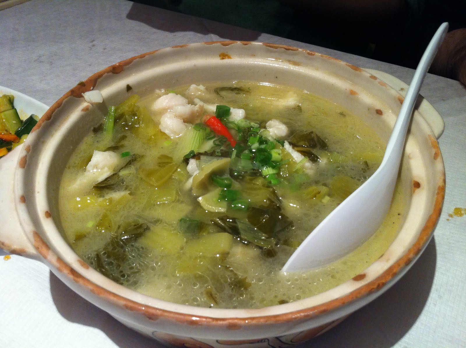 Sliced sea bass with preserved vegetable was a behemoth of a pot. Bobbing in the broth was silky slices of fish. At first, it tasted slightly bland, but blandness turned to comfort when spooned over a bowlful of rice.