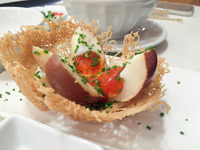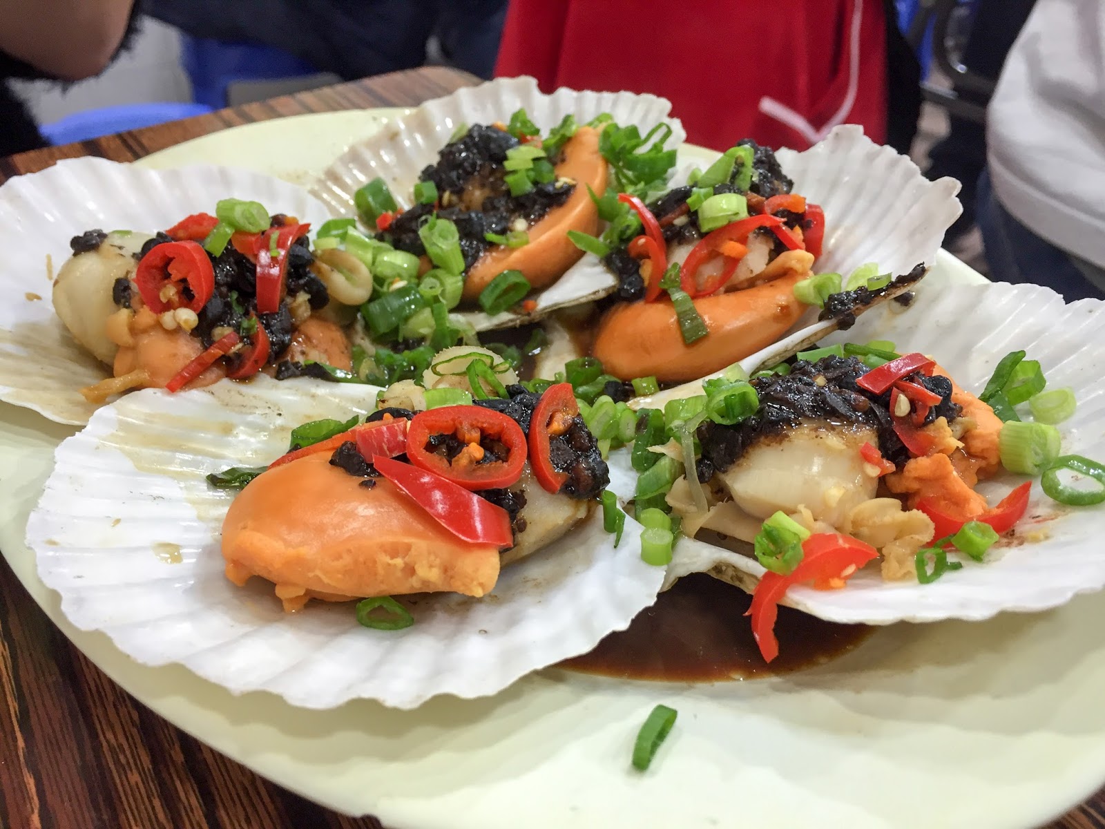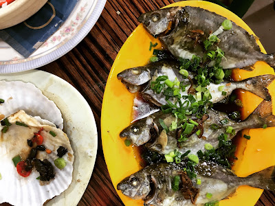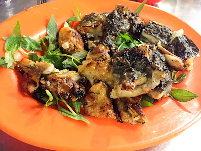 Back onto the scooters we went, over a busy bridge to District 5 for seafood. On the way my driver asked me if I'd like to try balut, a speciality of Vietnam (called trung vit long) and the Philippines. I knew exactly what it was and I knew exactly that my stubbornness would mean that yes I would have to try it. She had me in a bind. Firstly though, we had tiny barbecued scallops dressed with fish sauce, peanuts and coriander. Crab legs cooked on the barbecue were cracked open by our drivers and handed to us to dip in black pepper, salt and lime juice; it felt a bit weird to be effectively be fed morsels but I can understand that it might be intimidating for some. Still, I like to roll my sleeves up and get stuck in.