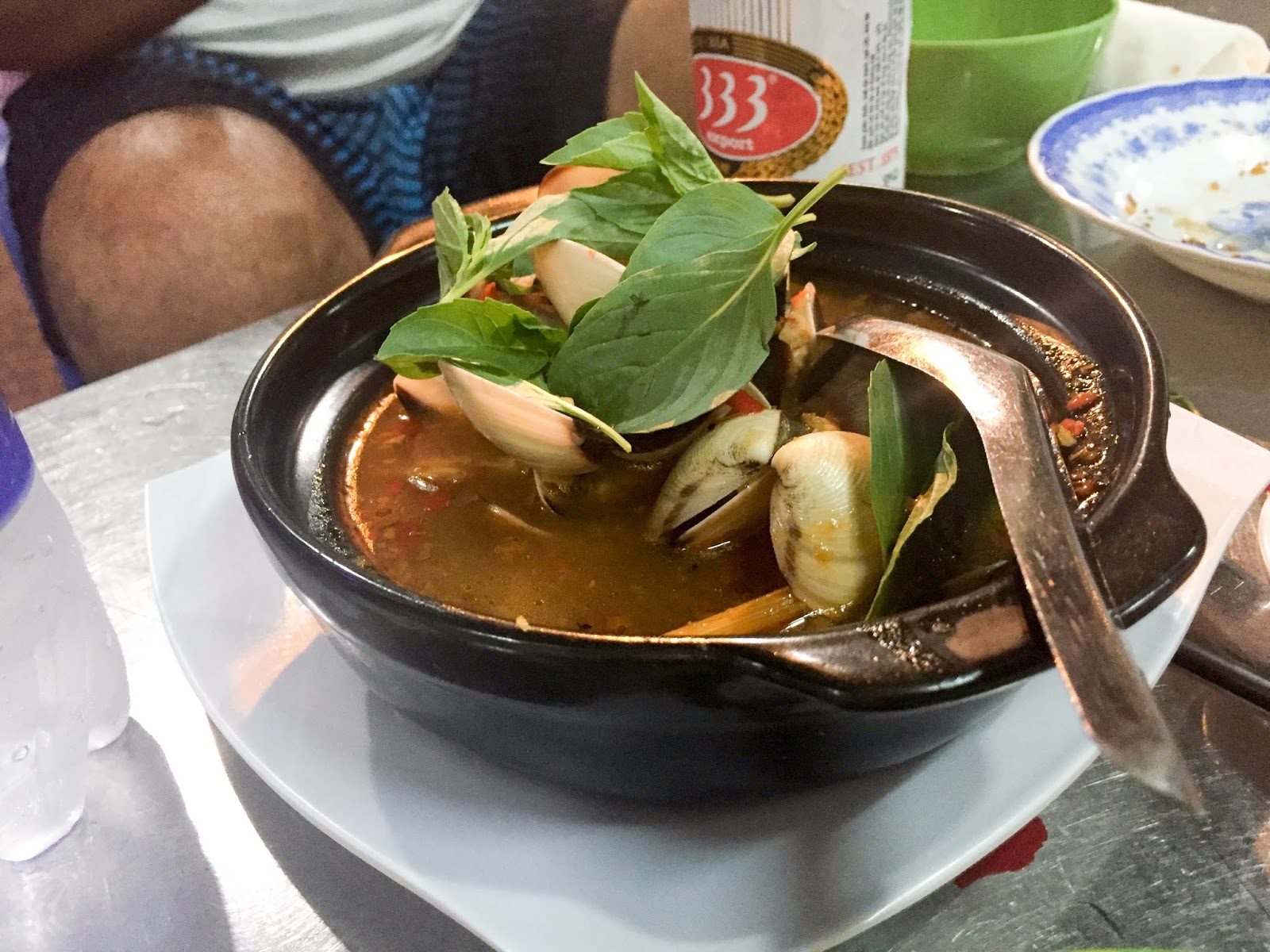 Back to the present, with stomachs grumbling in a foreign land, we wandered around some very quiet streets and came across an absolutely giant restaurant, lined with fish tanks with all sorts of crustaceans. We jumped on a table. We soon realised that we were the only women customers in a restaurant full of raucously drunk men. After trying to up-sell us onto foreign beer and offering us seafood by the kilo, we knew we had to stand our ground with the waitresses and very firmly picked dishes from the menu with obvious prices. Hunger made us determined and blind to the stares. Steamed lemongrass clams were sweet and free from grit, finished with healthy bunch of basil used more like a vegetable than a herb.