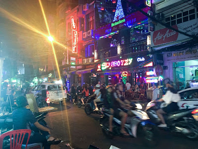 How do you cross the road? There are no zebra or pelican crossings. We had to do what the locals were doing - just walk out into the road, head up, with confidence and sure enough the scooters go around you. It goes against absolutely everything you were taught about road safety. An old lady took us by the hand and led us across, smirking. We were told later to make sure you don't make eye contact when you cross the streets - this confuses the drivers as to what your intention is. Just go. By the time we got to the massage place we were jibbering wrecks. Led to a darkened room with rows of leather seats, all taken up by silent customers, the foot massage was incredible. The back and shoulder combo also - but be warned, it does feel a little bit like being beaten up. They're not messing.