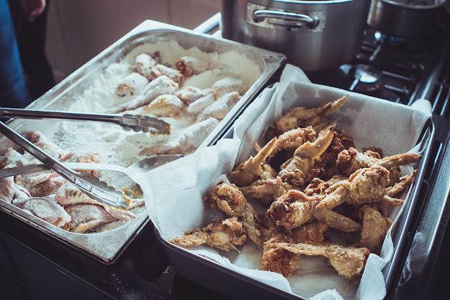 While cooking for our charity supperclub last weekend, we discovered what is possibly the holy grail of chicken wings, and it is not in buffalo form. I do love buffalo, don't get me wrong, but this transcends it. It takes the wing tip and uses it as a sticky handle, and using it you can lever it to your face to bite into. A sweet salty glaze, made using fish sauce and sugar and dark soy, coats the wing to make sure you cannot come away cleanliness intact. It is also a fact(oid) that pork and salt and sugar are the holy trinity of flavour.