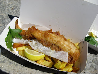 The mackerel were then stuffed with lemon, liberally oiled, seasoned with salt and pepper and cooked on a hot barbeque until the skins were crisp. Simply served with a salad, these were beautiful; the fruits of my mates' labours and delicious to boot. We even convinced my fish-disliking housemate, who caught the most, to give them a try. She liked it, and thus we crowned her Fish Queen of the week.